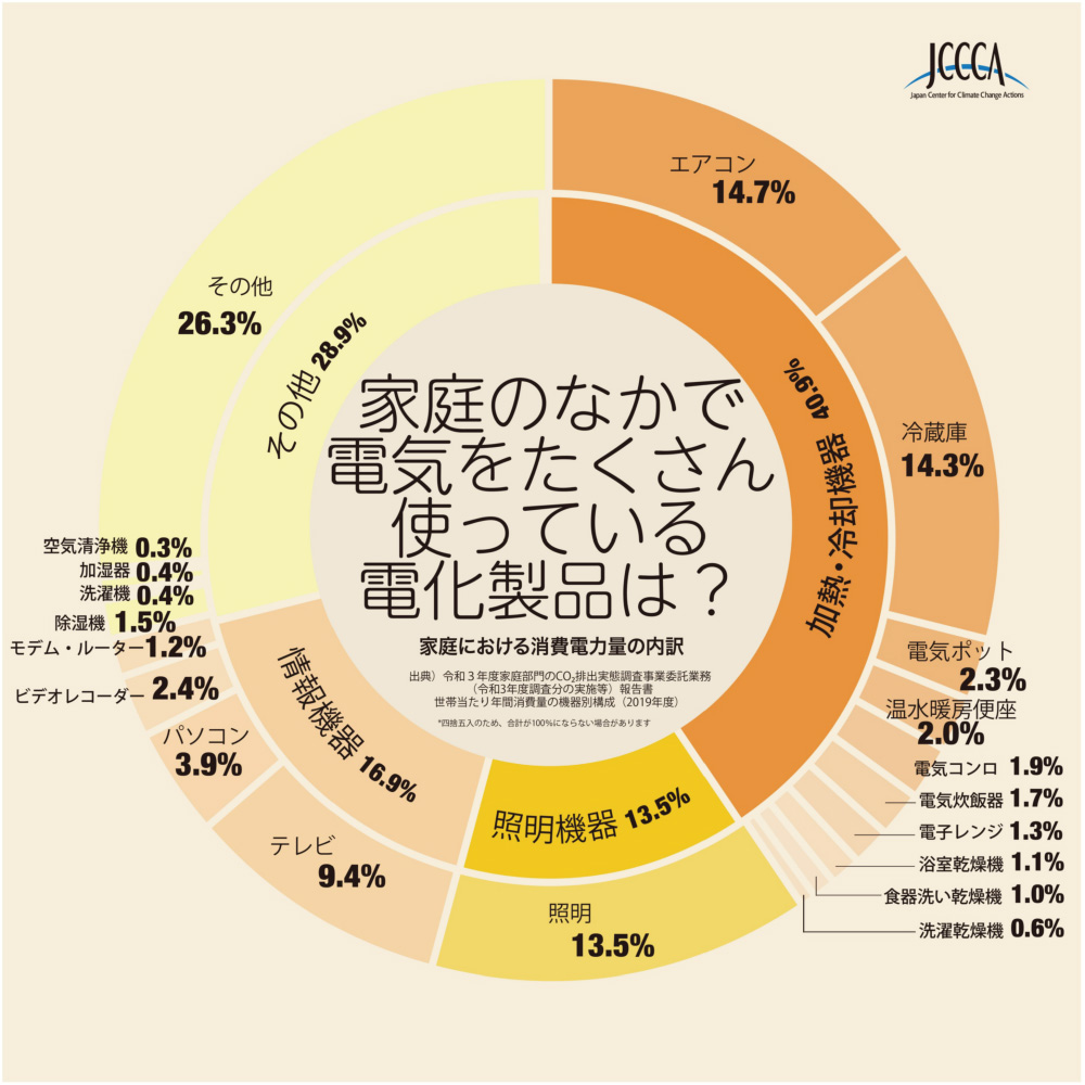 ※ 家庭における消費電力量の内訳